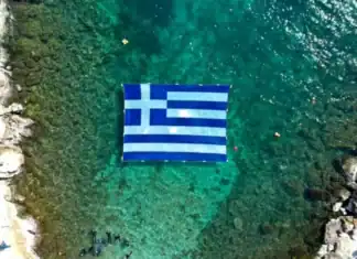Η Γαλανόλευκη στη θάλασσα του Πειραιά για την Εθνική Επέτειο της...