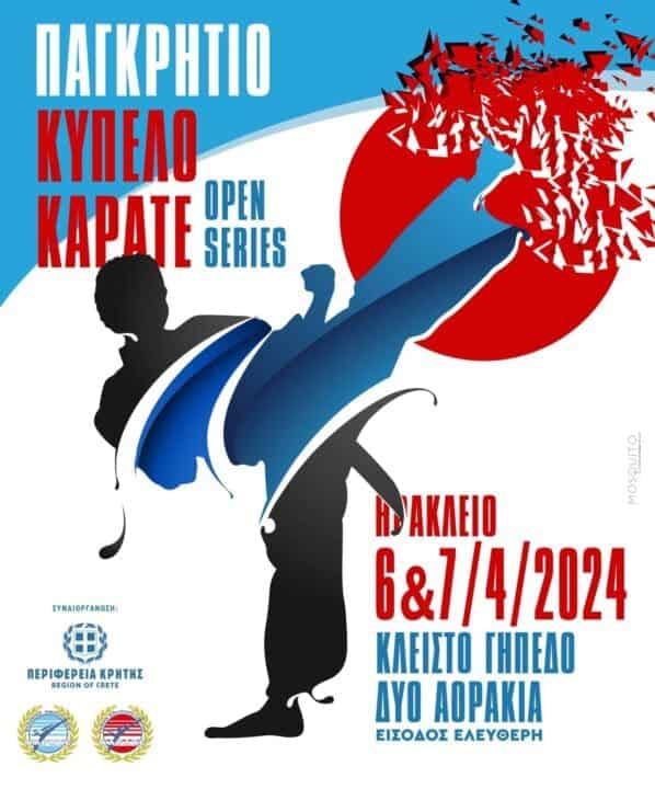 Η Ελληνική Ομοσπονδία Καράτε (ΕΛΟΚ) και η Ακαδημία Σοτοκάν Καράτε Ντο Ηρακλείου, με την στήριξη της Περιφέρειας Κρήτης, συνδιοργανώνουν το Παγκρήτιο κύπελλο καράτε έγχρωμων και μαύρων ζωνών καράτε Κρήτης «KARATE OPEN SERIES ΗΡΑΚΛΕΙΟ 2024» στις 6-7 Απριλίου 2024 στο Κλειστό Γυμναστήριο Αλικαρνασσού στα Δύο Αοράκια.