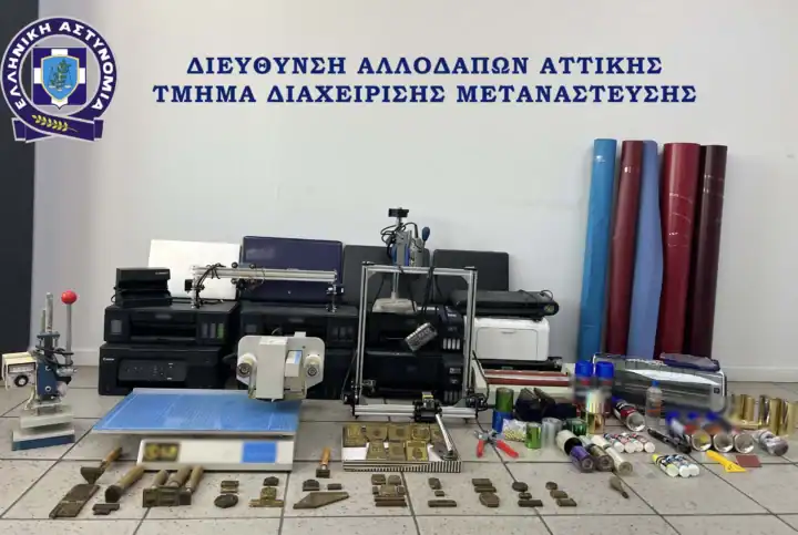 Από το Τμήμα Διαχείρισης Μετανάστευσης της Διεύθυνσης Αλλοδαπών Αττικής εντοπίστηκε τη Δευτέρα 8 Ιουλίου 2024, πλήρως εξοπλισμένο εργαστήριο κατάρτισης πλαστών ταξιδιωτικών εγγράφων σε σπίτι στην Καλλιθέα.