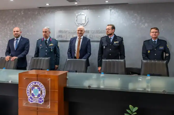 Ημερίδα για την αποτίμηση της συμμετοχής της Ελληνικής Αστυνομίας στο πρόγραμμα εκπαιδευτικής κινητικότητας ERASMUS+, που αποτελεί συνεργασία επαγγελματικής εκπαίδευσης και κατάρτισης Αστυνομιών Ελλάδας και Γερμανίας, πραγματοποιήθηκε την Τετάρτη 10 Ιουλίου 2024, στην αίθουσα Π. Μπακογιάννης του Υπουργείου Προστασίας του Πολίτη.