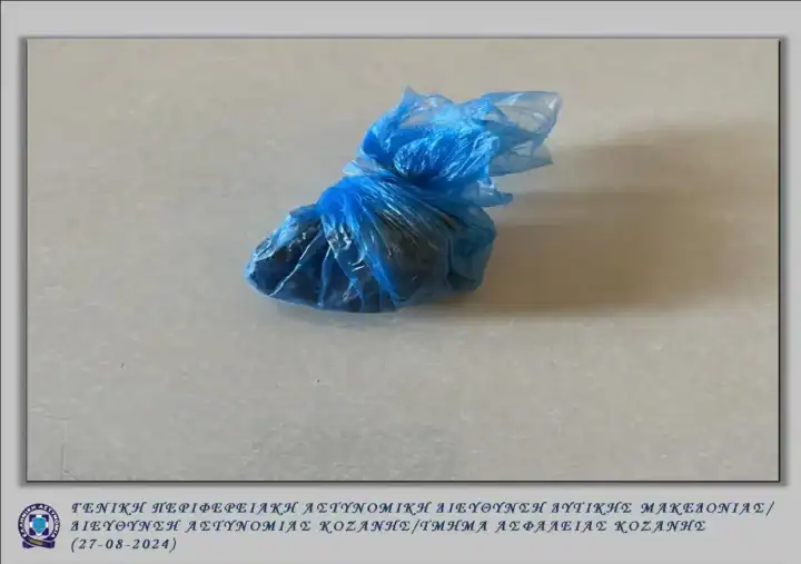 Συνελήφθη στις 26-08-2024 τις μεσημβρινές ώρες στην πόλη της Κοζάνης, από αστυνομικούς του Τμήματος Ασφάλειας Κοζάνης με τη συνδρομή αστυνομικού εκτός διατεταγμένης υπηρεσίας, 41χρονος ημεδαπός, για κατοχή και διακίνηση ναρκωτικών ουσιών.
