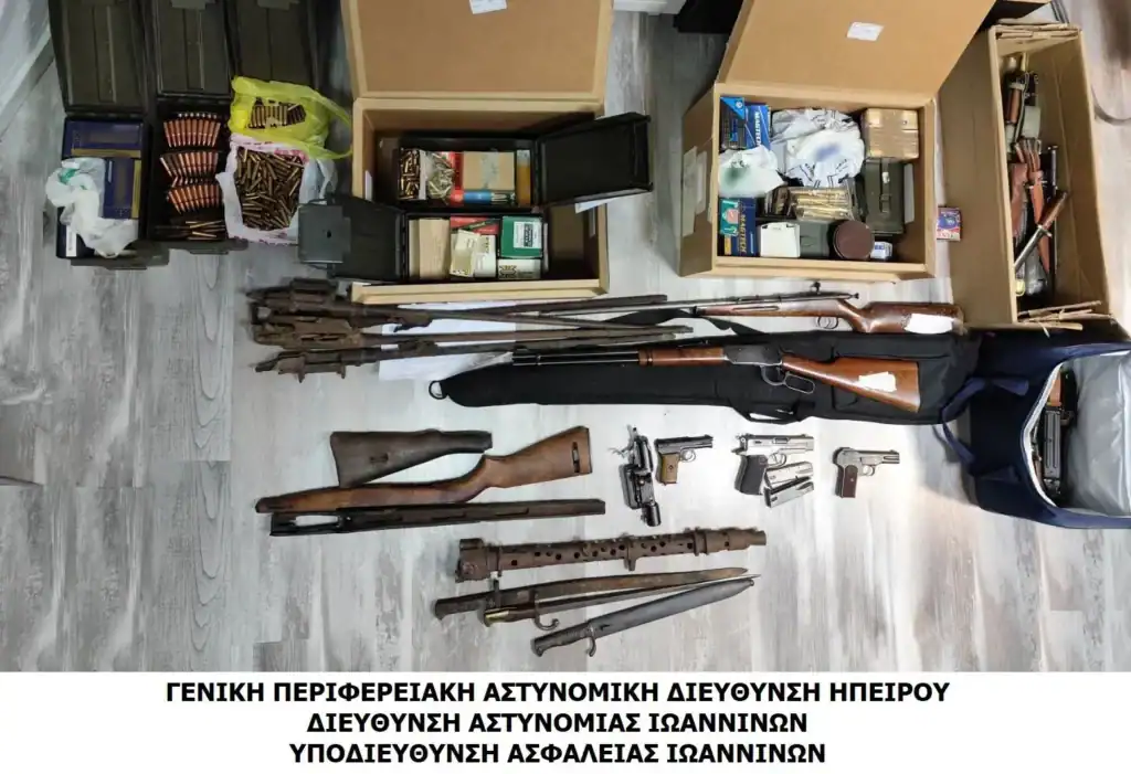 Πλήθος πολεμικού υλικού κατασχέθηκε στις 2-9-2024 στα Ιωάννινα από την Υποδιεύθυνση Ασφάλειας Ιωαννίνων.