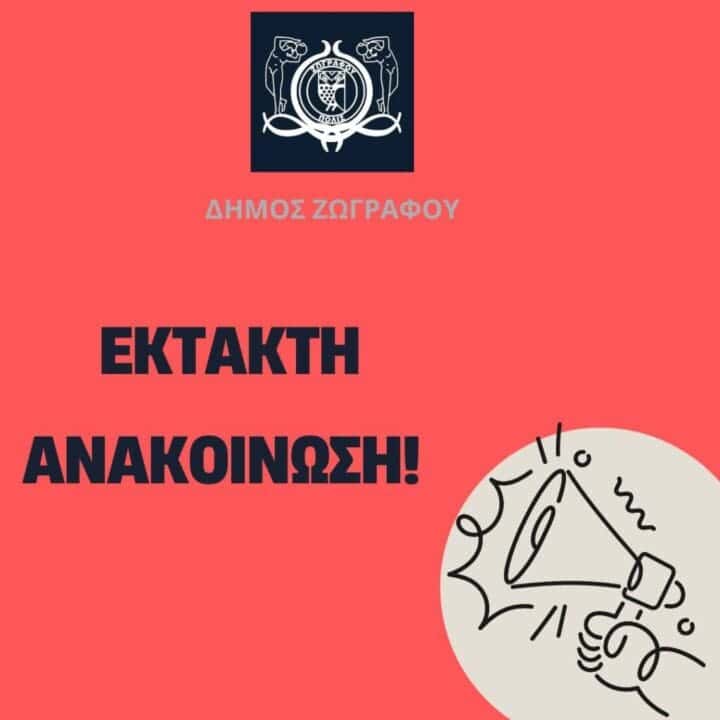 Ο Δήμος Ζωγράφου έκανε την ακόλουθη ανακοίνωση: