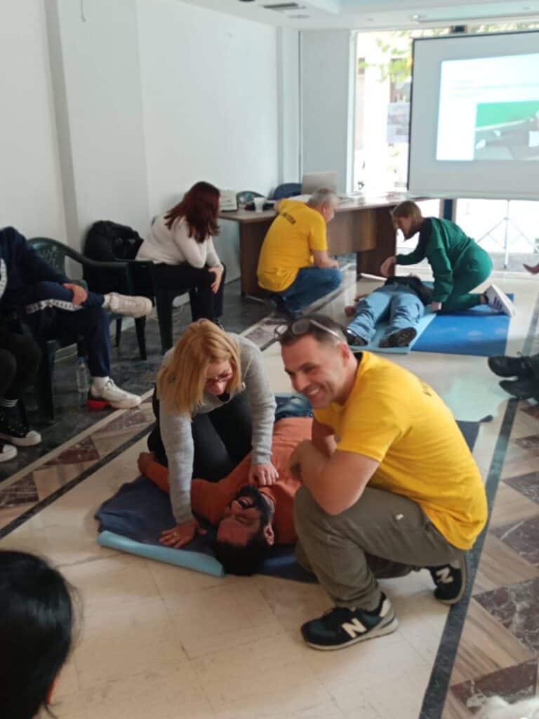 Οι συμμετέχοντες παρακολούθησαν με εξαιρετικό ενδιαφέρον το σεμινάριο Πρώτων Βοηθειών στο χώρο της Αντιδημαρχίας Εθελοντισμού κατά τη διάρκεια του οποίου εκπαιδεύτηκαν σε θεωρητικό και πρακτικό επίπεδο για απόφραξη αεροφόρων σε βρέφος, παιδί, ενήλικα, για τη θέση ανάνηψης σε περίπτωση λιποθυμίας, για την ΚΑΡΠΑ σε βρέφος, παιδί, ενήλικα καθώς και για τη χρήση απινιδωτή. Μετά την ολοκλήρωση του σεμιναρίου, οι συμμετέχοντες έλαβαν βεβαίωση συμμετοχής.