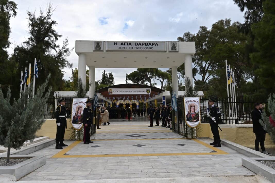 Την Τετάρτη 04 Δεκεμβρίου 2024, παρουσία του Γενικού Γραμματέα του Υπουργείου Εθνικής Άμυνας κ. Αντώνιου Οικονόμου, ως εκπρόσωπος του Προέδρου της Κυβέρνησης κ. Κυριάκου Μητσοτάκη και του Αρχηγού του Γενικού Επιτελείου Στρατού Αντιστράτηγου Γεώργιου Κωστίδη, ως εκπροσώπου του Αρχηγού του Γενικού Επιτελείου Εθνικής Άμυνας Στρατηγού Δημήτριου Χούπη, πραγματοποιήθηκε στην έδρα της Σχολής Πυροβολικού στο Στρατόπεδο «Τχη (ΠΒ) Γεωργιάδη Θωμά» στη Νέα Πέραμο Αττικής, ο επίσημος εορτασμός της Προστάτιδας του Όπλου του Πυροβολικού, Μεγαλομάρτυρος Αγίας Βαρβάρας.