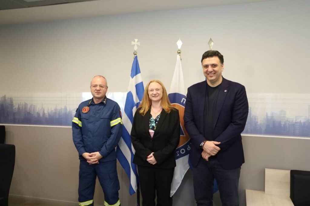 Για την ανταπόκριση της Ελλάδας στις μεγάλες προκλήσεις τις φετινής αντιπυρικής περιόδου συνεχάρη η Πρέσβυς της Αυστραλίας στην Ελλάδα, Alison Duncan, τον Υπουργό Κλιματικής Κρίσης και Πολιτικής Προστασίας, Βασίλη Κικίλια σε συνάντηση που πραγματοποιήθηκε χθες το πρωί, παρουσία του Αρχηγού του Πυροσβεστικού Σώματος, Αντιστράτηγου Θεόδωρου Βάγια.