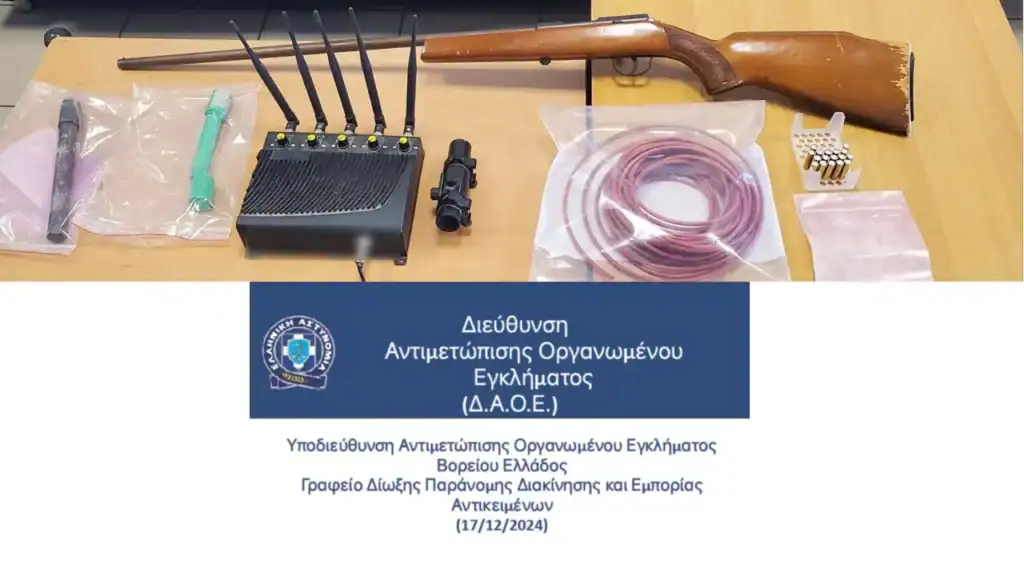 Συνολικά, από τις έρευνες που πραγματοποιήθηκαν στον χώρο, με τη συνδρομή αστυνομικών του Τμήματος Εξουδετέρωσης Εκρηκτικών Μηχανισμών, της Υποδιεύθυνσης Ειδικών Αστυνομικών Δυνάμεων Βορείου Ελλάδος, βρέθηκαν και κατασχέθηκαν: