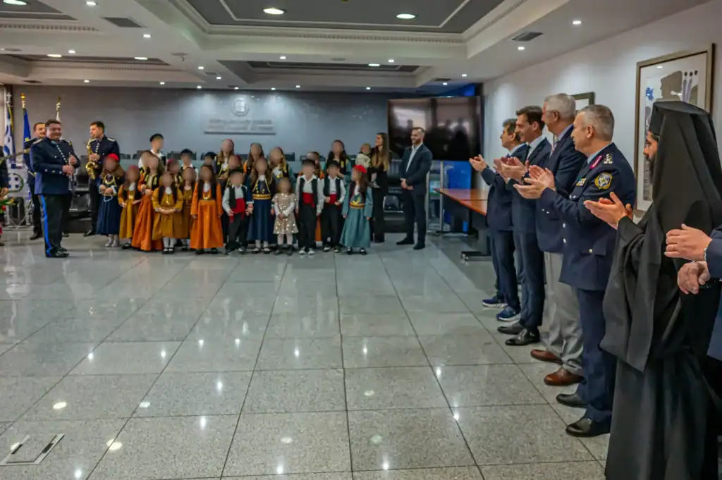 Τα Χριστουγεννιάτικα κάλαντα έψαλλαν και παιάνισαν χθες, Τρίτη 24 Δεκεμβρίου 2024, ενώ επιπλέον παρουσίασαν και ολιγόλεπτο πρόγραμμα παραδοσιακών χορών, σε εορταστική εκδήλωση που πραγματοποιήθηκε στο Υπουργείο Προστασίας του Πολίτη και στη Γενική Αστυνομική Διεύθυνση Αττικής: