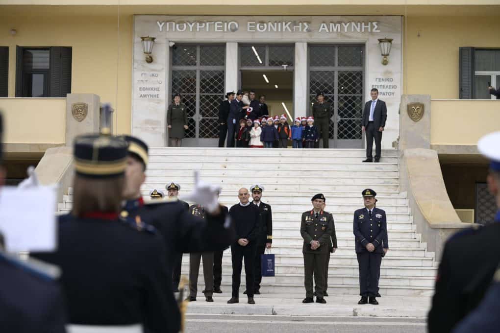Νωρίτερα, επισκέφτηκαν το Υπουργείο Εθνικής Άμυνας και έψαλαν τα χριστουγεννιάτικα κάλαντα στον κ. Δένδια τα παιδιά του Γ’ Βρεφονηπιακού Σταθμού Αθηνών με τους συνοδούς βρεφονηπιοκόμους τους.