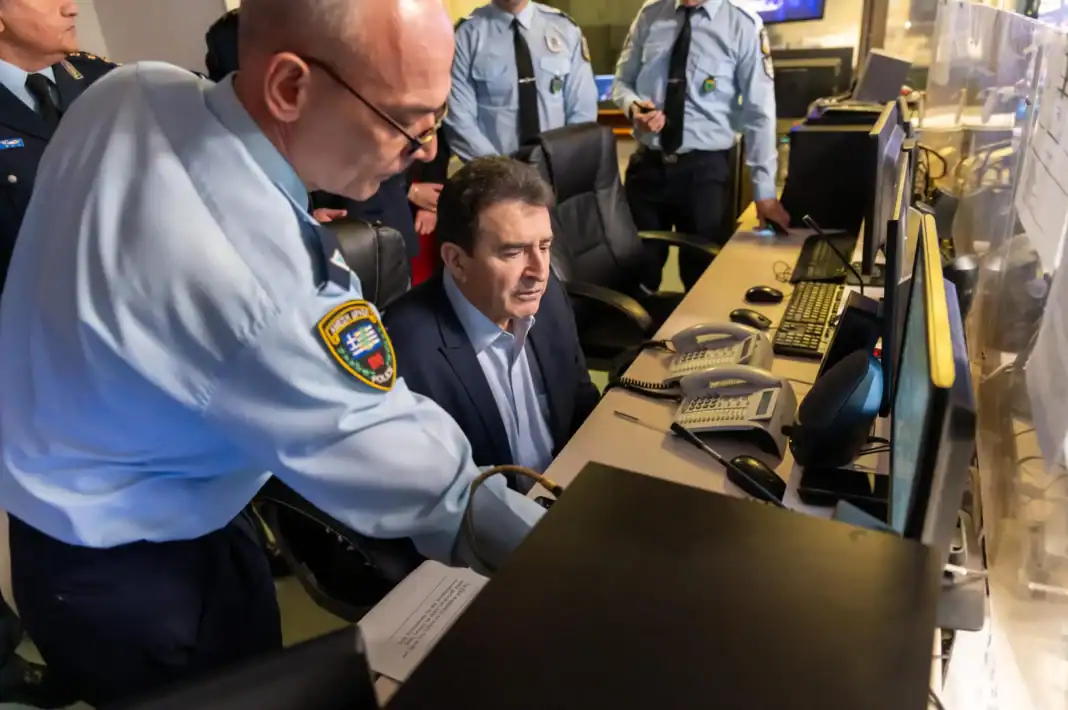 Αλλαγή του χρόνου στο κέντρο επιχειρήσεων της Άμεσης Δράσης στη Γενική Αστυνομική Διεύθυνση Αττικής έκανε ο Υπουργός Προστασίας του Πολίτη, Μ. Χρυσοχοΐδης, συνοδευόμενος από τον Υφυπουργό Προστασίας του Πολίτη, Ανδρέα Νικολακόπουλο και τον Αρχηγό της Ελληνικής Αστυνομίας, Αντιστράτηγο Δημήτριο Μάλλιο.