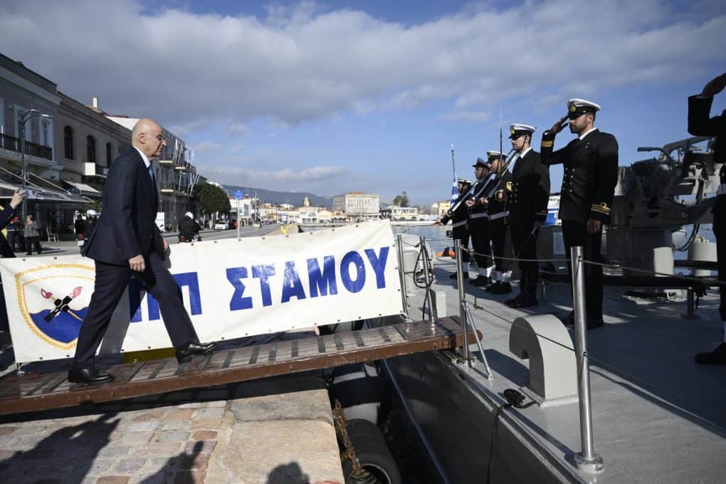 Στη συνέχεια, ο κ. Δένδιας επισκέφθηκε την Κανονιοφόρο (Κ/Φ) «Τόλμη» και το Παράκτιο Περιπολικό (ΠΠΚ) «Κελευστής Στάμου» του Πολεμικού Ναυτικού που ναυλοχούν στον λιμένα Χίου. Κατά τις επισκέψεις πραγματοποιήθηκε σύντομη ενημέρωση από τους Κυβερνήτες και ανταλλαγή ευχών με τα πληρώματα.