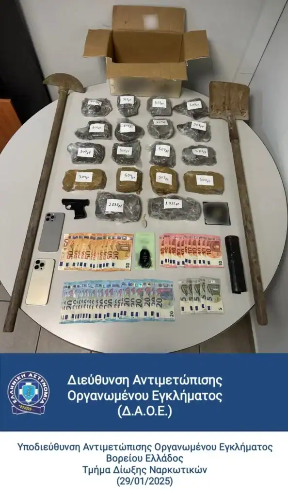 Σε έρευνες που πραγματοποιήθηκαν σε όχημα και σε οικία με τη συνδρομή αστυνομικών του Τμήματος Πληροφοριών και Ειδικών Δράσεων της Υποδιεύθυνσης Αντιμετώπισης Οργανωμένου Εγκλήματος Βορείου Ελλάδος, βρέθηκαν και κατασχέθηκαν: