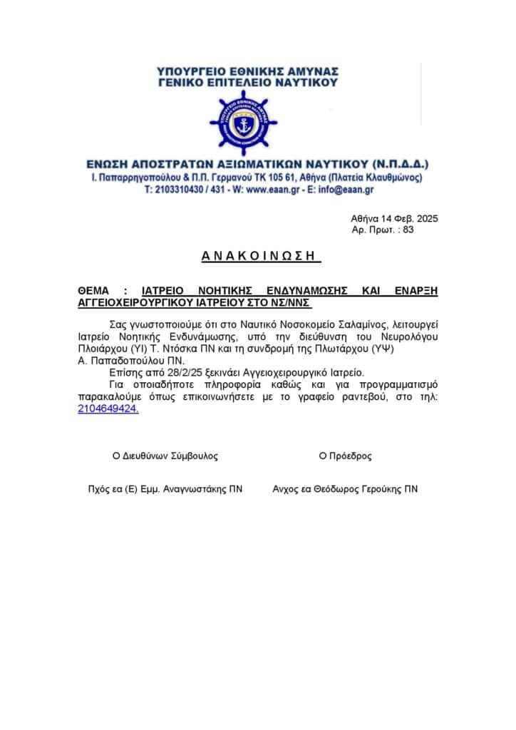 Ελλάδα ΝΝΣ / Ιατρείο Νοητικής Ενδυνάμωσης & Έναρξη Λειτουργίας Αγγειοχειρουργικού Ιατρείου