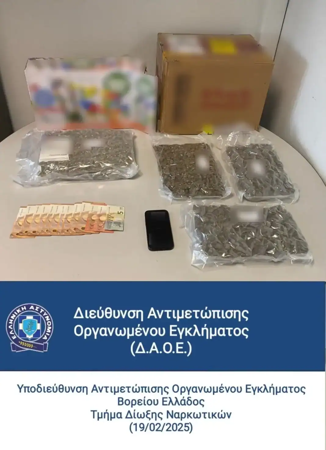 Από το Τμήμα Δίωξης Ναρκωτικών, της Υποδιεύθυνσης Αντιμετώπισης Οργανωμένου Εγκλήματος Βορείου Ελλάδος, συνελήφθη πρωινές ώρες της Τετάρτης, 19 Φεβρουαρίου 2025, στη Θεσσαλονίκη, άτομο που κατηγορείται για παράβαση της νομοθεσίας περί ναρκωτικών.