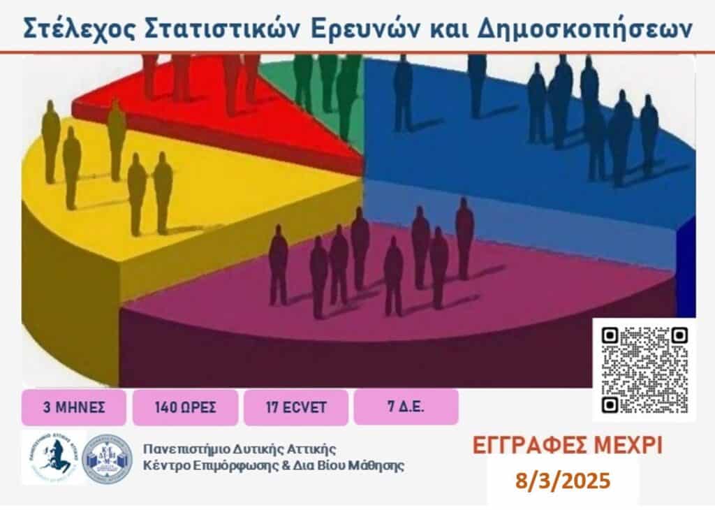 Μην χάσετε την ευκαιρία να αναβαθμίσετε τις γνώσεις σας στη διεξαγωγή στατιστικών ερευνών και δημοσκοπήσεων!