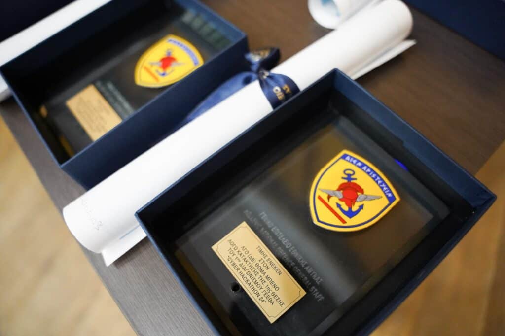 Την Τετάρτη 05 Μαρτίου 2025 πραγματοποιήθηκε η τελετή βράβευσης του 1ου διαδικτυακού διαγωνισμού «CYBER HACKATHON HNDGS 2024». Η δραστηριότητα έλαβε χώρα στο αμφιθέατρο «ΕΠΙΣΜΗΝΑΓΟΣ Δ. ΚΑΜΠΕΡΟΣ» παρουσία του Αρχηγού ΓΕΕΘΑ Στρατηγού Δημήτριου Χούπη, ο οποίος και απένειμε τα αναμνηστικά βράβευσης στους πρωτεύσαντες.