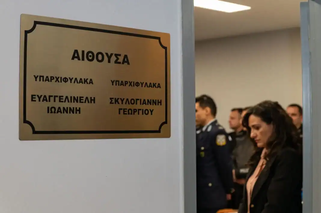 Σε τελετή που πραγματοποιήθηκε χθες, Δευτέρα 10 Μαρτίου 2025, στο Αστυνομικό Μέγαρο Αττικής, παρουσία των γονέων και συγγενών των αστυνομικών Γεώργιου Σκυλογιάννη και Ιωάννη Ευαγγελινέλη, του Υπουργού Προστασίας του Πολίτη, Μιχάλη Χρυσοχοΐδη και του Αρχηγού της Ελληνικής Αστυνομίας, Αντιστράτηγου Δημήτριου Μάλλιου, δόθηκε το όνομα των αδικοχαμένων αστυνομικών στην αίθουσα συσκέψεων και συνεδριάσεων της Διεύθυνσης Άμεσης Δράσης Αττικής.
