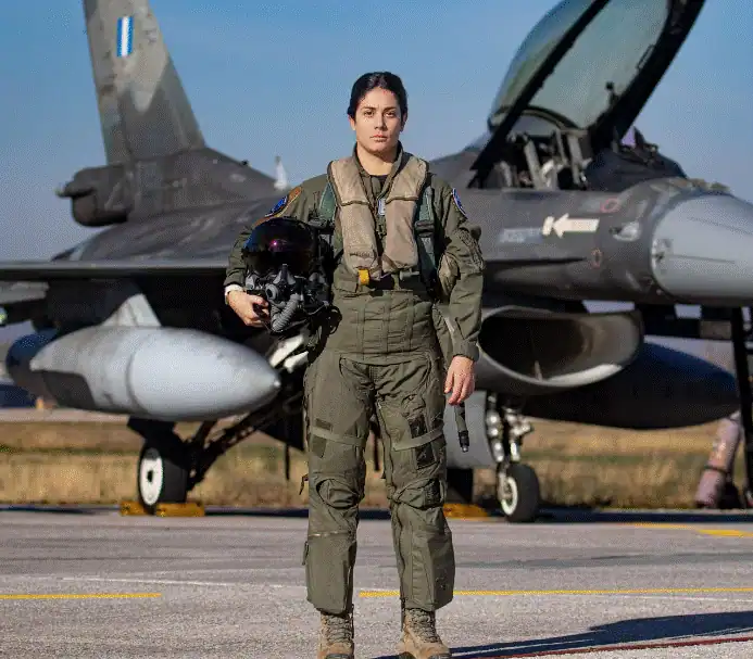 Η πρώτη Ελληνίδα πιλότος F-16, με την «πουλάδα» υπερήφανα καρφιτσωμένη στη στολή της, στέκεται σχεδόν κάθε ημέρα μπροστά στο μαχητικό της, το επιθεωρεί προτού καθίσει στο όχι και τόσο άνετο κάθισμα, βάζει την κάσκα της, δοκιμάζει το οξυγόνο, τον ασύρματο, τα πτερύγια και απογειώνεται. Εδώ και τρία χρόνια πετά με το μαχητικό λαμβάνοντας μέρος σε αρκετές αποστολές, όχι μόνο στο Αιγαίο, αλλά και σε διεθνείς ασκήσεις όπως ο «Ηνίοχος», μια άσκηση η οποία συγκεντρώνει μεγάλο αριθμό ξένων συμμετεχόντων, καθώς και σε συνεκπαιδεύσεις με συμμαχικές αεροπορίες.