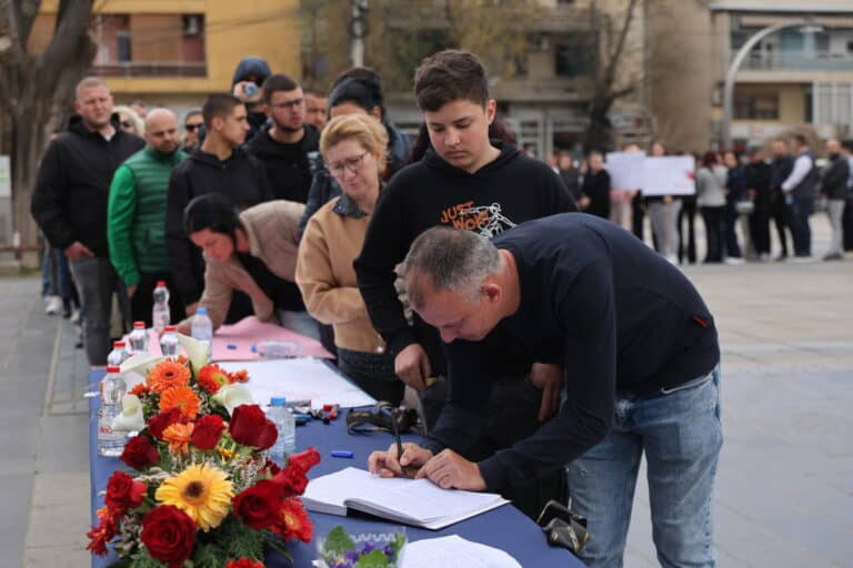 Συγκέντρωση πραγματοποιήθηκε και στο Κοτσάνι, όπου δεκάδες άνθρωποι στάθηκαν στην ουρά για να υπογράψουν το βιβλίο συλλυπητηρίων.
