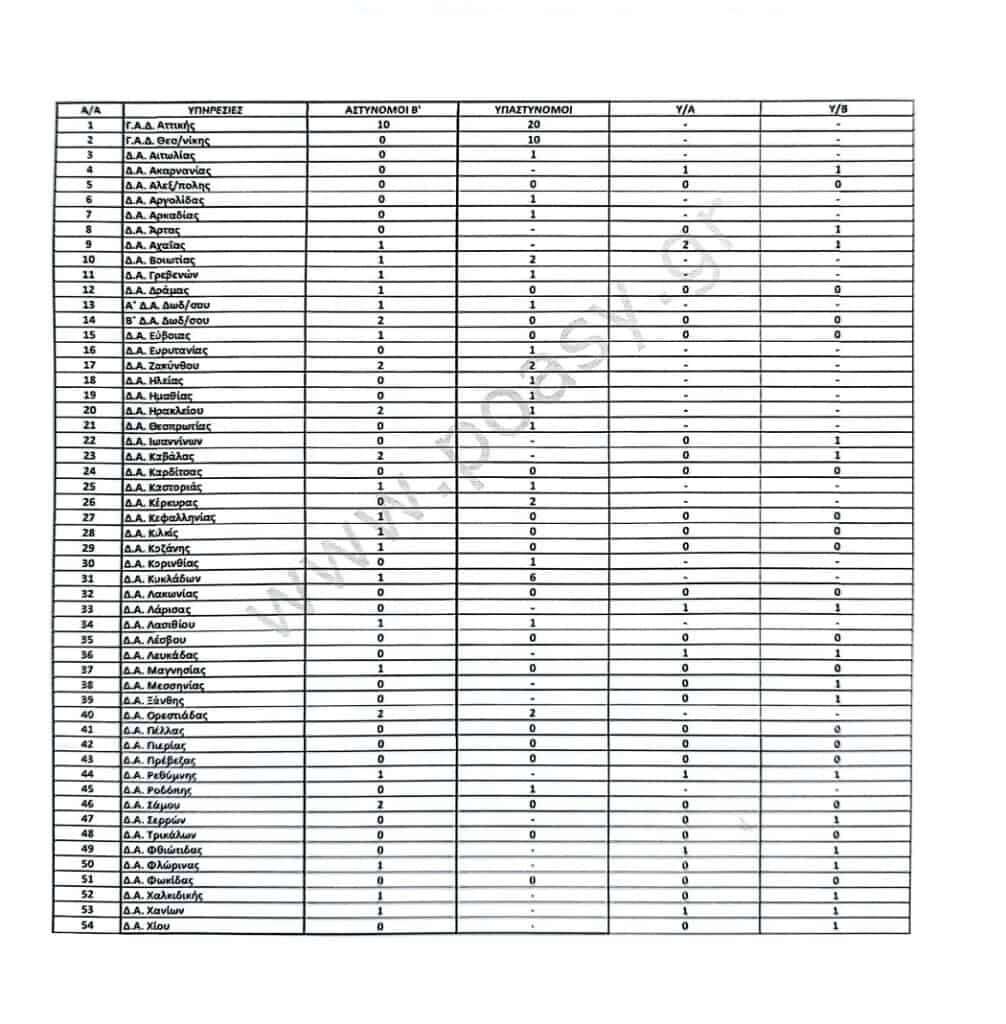 Σώματα Ασφαλείας Αστυνομία Π.Ο.ΑΣ.Υ.: Θέσεις κατωτέρων αξιωματικών για τις τακτικές μεταθέσεις του έτους 2025 με...