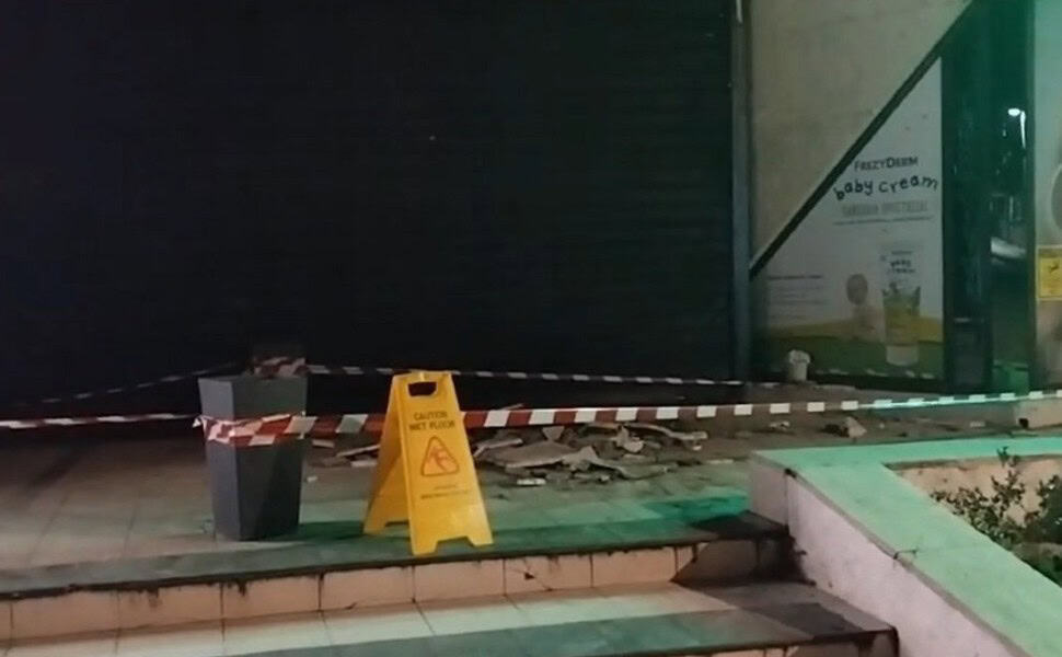 Τμήμα οροφής κατέρρευσε στην είσοδο εμπορικού κέντρου στο Πανόραμα, την περασμένη Δευτέρα, χωρίς να υπάρξει κάποιος τραυματισμός.
