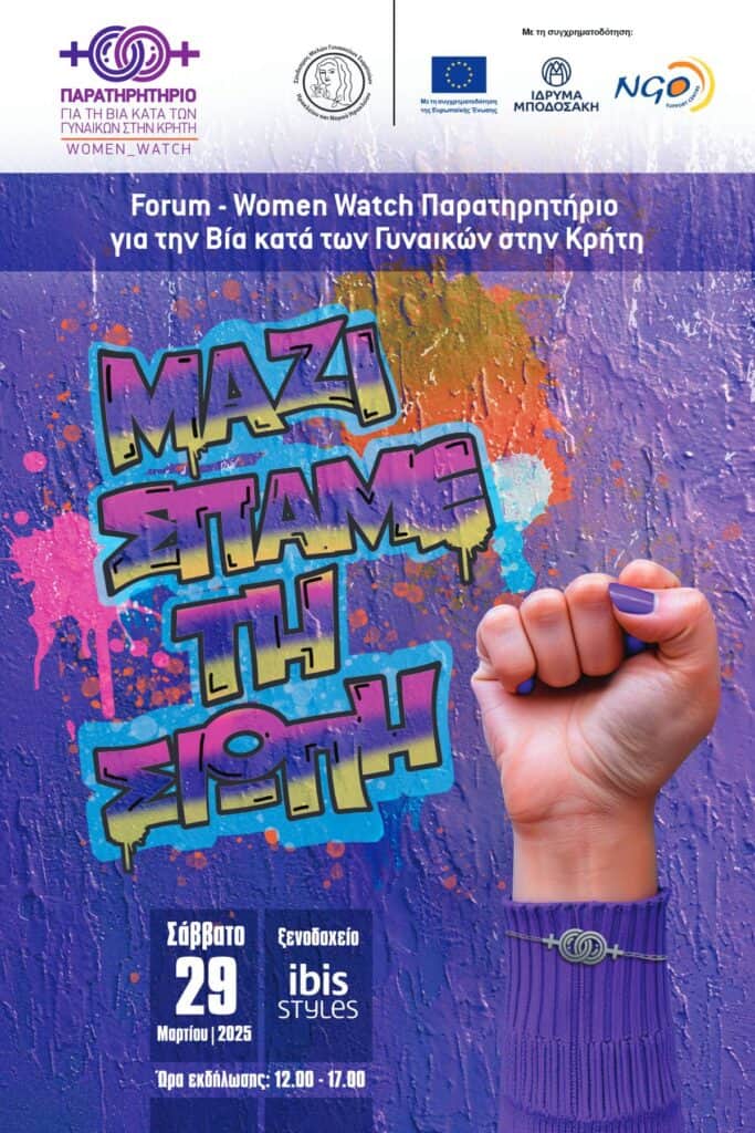 *Υπενθυμίζεται ότι το «Παρατηρητήριο για τη Βία κατά των Γυναικών στην Κρήτη υλοποιείται στο πλαίσιο του Προγράμματος BUILD, με Φορέα υλοποίησης τον «Σύνδεσμο Μελών Γυναικείων Σωματείων Ηρακλείου και Ν. Ηρακλείου-Union of Women Association». Το BUILD συγχρηματοδοτείται από την Ευρωπαϊκή Ένωση, μέσω του Προγράμματος Citizens, Equality, Rights and Values (CERV), το Bodossaki Foundation – Ίδρυμα Μποδοσάκη και το Κέντρο Στήριξης ΜΚΟ».