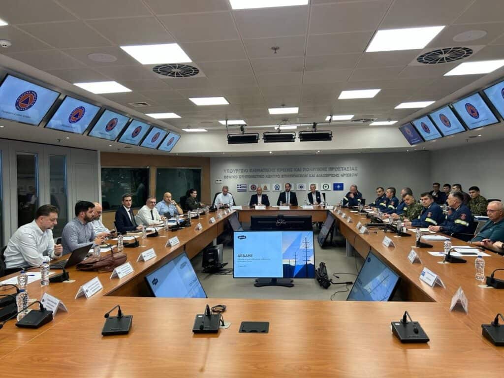 Στη σύσκεψη συμμετείχαν ακόμη, ο Υφυπουργός Κλιματικής Κρίσης και Πολιτικής Προστασίας Ευάγγελος Τουρνάς, ο Γενικός Γραμματέας Πολιτικής Προστασίας Νίκος Παπαευσταθίου, ο Αρχηγός του Πυροσβεστικού Σώματος Αντιστράτηγος Θεόδωρος Βάγιας, ο Υπαρχηγός του Πυροσβεστικού Σώματος Αντιστράτηγος Γεώργιος Μαρκουλάκης, ο Επιτελάρχης του Πυροσβεστικού Σώματος Αντιστράτηγος Αθανάσιος Μπαλάφας, ο Γενικός Επιθεωρητής Νοτίου Ελλάδας Αντιστράτηγος Χρήστος Πλατάς, ο Διοικητής του Ενιαίου Συντονιστικού Κέντρου Διαχείρισης Κρίσεων (ΕΣΚΕΔΙΚ) Υποστράτηγος Δημήτριος Μπριόλας, ο Προϊστάμενος Κλάδου Επιχειρήσεων του Πυροσβεστικού Σώματος Υποστράτηγος Σίμος Αποστόλου, ο Προϊστάμενος Διεύθυνσης Σχεδιασμού Αντιμετώπισης Εκτάκτων Αναγκών Δημήτρης Αλεξανδρής, ο Ειδικός Συνεργάτης Υφυπουργού Κλιματικής Κρίσης και Πολιτικής Προστασίας Φοίβος Θεοδώρου, ο Διευθυντής της Διεύθυνσης Περιφέρειας Αττικής Αθανάσιος Φουντουλάκης καθώς και Γενικοί Διευθυντές, Σύμβουλοι και στελέχη των ΑΔΜΗΕ και ΔΕΔΔΗΕ.
