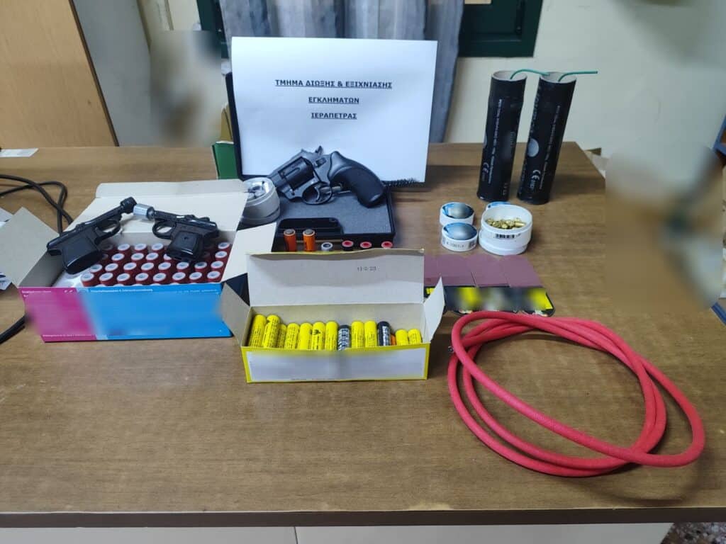 Συνελήφθη, στις 28.03.2025 το μεσημέρι σε περιοχή του Δήμου Ιεράπετρας από αστυνομικούς του Τμήματος Δίωξης και Εξιχνίασης Εγκλημάτων Ιεράπετρας, 37χρονη γυναίκα (ημεδαπή), κατηγορούμενη για παραβάσεις των νόμων περί όπλων και φωτοβολίδων και εκρηκτικών.