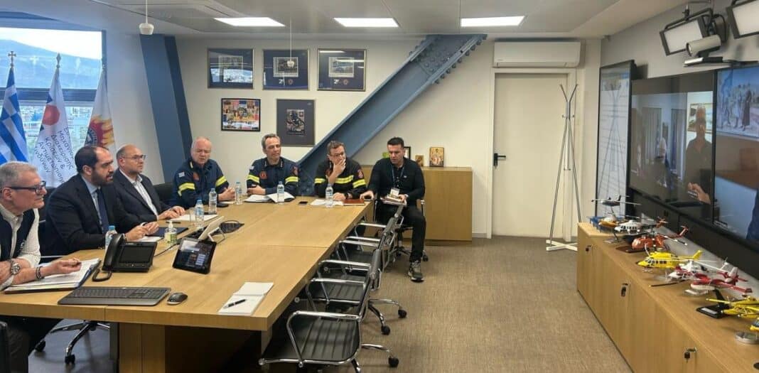 Στη σύσκεψη συμμετείχαν, ο Υφυπουργός Κλιματικής Κρίσης και Πολιτικής Προστασίας κ. Ευάγγελος Τουρνάς, ο Γενικός Γραμματέας Πολιτικής Προστασίας κ. Νίκος Παπαευσταθίου, ο Γενικός Γραμματέας Αυτοδιοίκησης και Αποκέντρωσης κ. Σάββας Χιονίδης, ο Αρχηγός του Πυροσβεστικού Σώματος Θεόδωρος Βάγιας, ο Πρόεδρος της Κεντρικής Ένωσης Δήμων Ελλάδος (Κ.Ε.Δ.Ε.) Λάζαρος Κυρίζογλου, καθώς και ο Πρόεδρος της Επιτροπής Πολιτικής Προστασίας της Κ.Ε.Δ.Ε. Βλάσης Σιώμος.