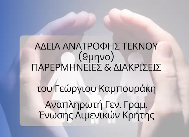 Επειδή πολύ συχνά εκφράζονται παράπονα συναδέλφων από όλη την Ελλάδα για διακριτική μεταχείριση στο άρρεν προσωπικό του ΛΣ-ΕΛ.ΑΚΤ, όταν αιτείται την 9μηνη άδεια ανατροφής τέκνου, παραθέτω πληροφορίες – διευκρινήσεις σχετικά με το νομικό πλαίσιο που διέπει την συγκεκριμένη ευεργετική διάταξη.