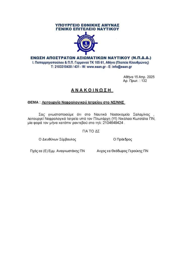 Ελλάδα Λειτουργία Νεφρολογικού Ιατρείου στο ΝΣ/ΝΝΣ Ελλάδα Λειτουργία Νεφρολογικού Ιατρείου στο ΝΣ/ΝΝΣ 23/04/2025 FacebookTwitterWhatsAppEmailΤυπώνωTelegramViber ΣΤΗΝ ΙΔΙΑ ΚΑΤΗΓΟΡΙΑΠΕΡΙΣΣΟΤΕΡΑ... Ελλάδα Μακεδονία: Νεαρός άνδρας οδηγούσε τα ξημερώματα με 179χλμ/ώρα και συνελήφθη Ελλάδα Χανιά: Δέκα συλλήψεις μετά από καταγγελία ανήλικης για ομαδικό βιασμό Ελλάδα Διακινητής μετέφερε οκτώ μετανάστες στο ρυμουλκούμενο του οχήματός του ΔΙΑΒΑΣΤΕ ΕΠΙΣΗΣ Πρώτες βοήθειες σε τροχαία ατυχήματα 17/03/2026 Λασίθι: Με τρία νέα οχήματα ενισχύεται το Λιμεναρχείο Αγίου Νικολάου –... 16/03/2026 Μακεδονία: Νεαρός άνδρας οδηγούσε τα ξημερώματα με 179χλμ/ώρα και συνελήφθη 16/03/2026 FT: Υπουργοί της ΕΕ θα συζητήσουν τη διεύρυνση της αποστολής «Ασπίδες»... 16/03/2026 Χανιά: Δέκα συλλήψεις μετά από καταγγελία ανήλικης για ομαδικό βιασμό 16/03/2026 Β. Κικίλιας: «Θα κάνουμε ό,τι μπορούμε για τους Έλληνες ως προς... 16/03/2026 Διακινητής μετέφερε οκτώ μετανάστες στο ρυμουλκούμενο του οχήματός του 16/03/2026 Δολοφονία 20χρονου στην Καλαμαριά – Συμπληρωματική δίωξη στα δύο άτομα που... 16/03/2026 Νεκρός εντοπίστηκε αγνοούμενος ηλικιωμένος ψαράς, σε βραχώδη περιοχή κοντά στη Λίνδο 16/03/2026 Πυροσβέστες Νομού Ηρακλείου: Συνάντηση αντιπροσωπείας 8 συνεργαζόμενων Σωματείων με τον Αντιστράτηγο... 16/03/2026