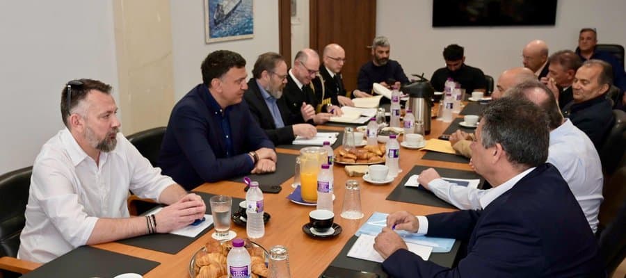 Σε πολύ καλό κλίμα πραγματοποιήθηκε χθες στην Πανελλήνια Ναυτική Ομοσπονδία (ΠΝΟ) συνάντηση εργασίας του Υπουργού Ναυτιλίας και Νησιωτικής Πολιτικής, Βασίλη Κικίλια, παρουσία του Γενικού Γραμματέα Ναυτιλίας και Λιμένων, Ευάγγελου Κυριαζόπουλου και του Α’ Υπαρχηγού ΛΣ-ΕΛΑΚΤ, Αντιναυάρχου Λ.Σ. Χρήστου Κοντορουχά, με τον Γενικό Γραμματέα της ΠΝΟ Capt. Εμμανουήλ Τσικαλάκη και τους Προέδρους των ναυτικών σωματείων της ΠΝΟ, οι οποίοι παρουσίασαν αναλυτικά τα θέματα που απασχολούν τον κλάδο.