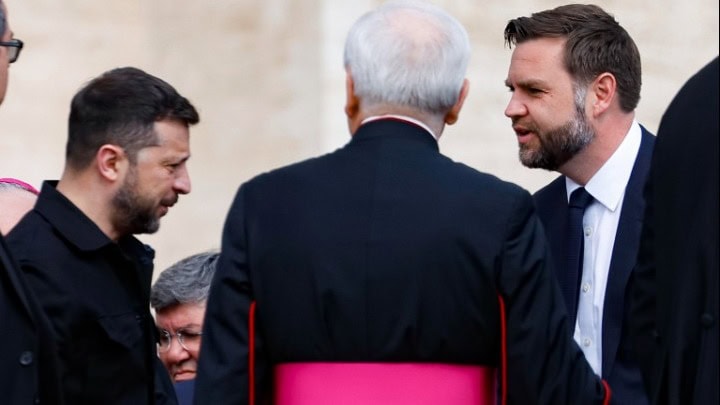 Ο πρόεδρος της Ουκρανίας Βολοντίμιρ Ζελένσκι συναντήθηκε χθες στη Ρώμη με τον αντιπρόεδρο των ΗΠΑ Τζέι Ντι Βανς και συνομίλησαν για «περίπου μισή ώρα», έπειτα από μια συνάντηση με τον πάπα Λέοντα ΙΔ στο Βατικανό, είπε στο Γαλλικό Πρακτορείο Ειδήσεων (AFP) ένας Ουκρανός υψηλόβαθμος αξιωματούχος.
