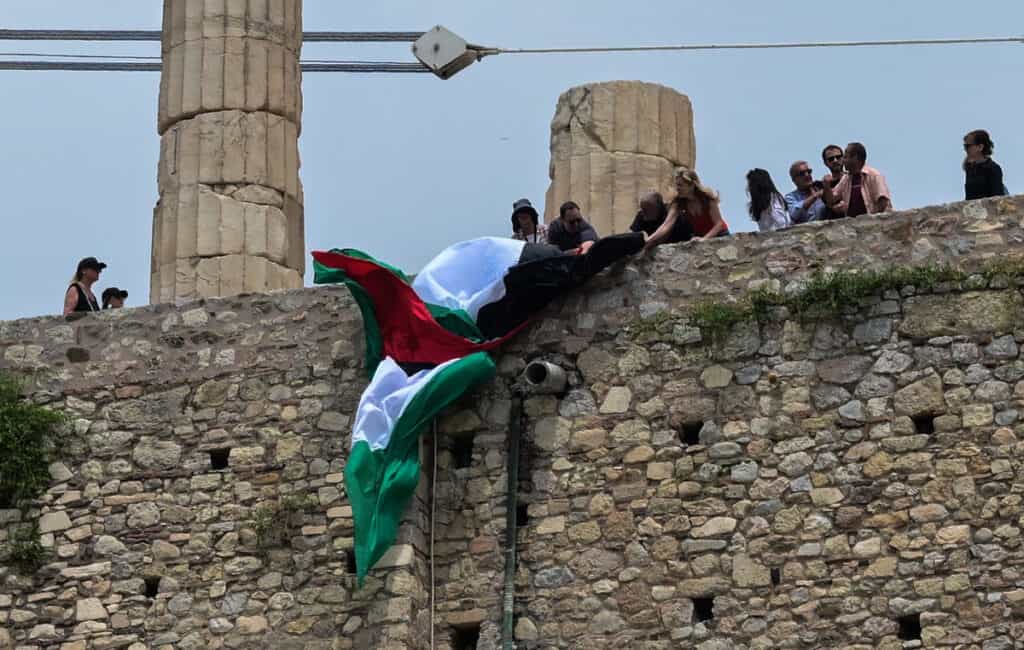 Ειδικότερα, σύμφωνα με την Αστυνομία, οι προσαχθέντες επιχείρησαν να ανοίξουν σημαία της Παλαιστίνης στην Ακρόπολη.