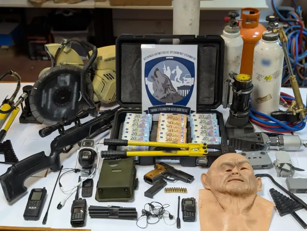 Παράλληλα, διαπιστώθηκε ότι, κατείχαν διαρρηκτικά εργαλεία, όπως τροχούς κοπής μετάλλων, οξυγόνο, ιμάντες, λοστούς, καθώς και συσκευές για να εμποδίσουν την μετάδοση του σήματος του ΑΤΜ με το κεντρικό σύστημα ελέγχου, ενώ κατά τη διάρκεια της δράσης τους, φορούσαν γάντια και κάλυπταν τα χαρακτηριστικά των προσώπων τους με διάφορες κουκούλες, fullface και μαντίλια.