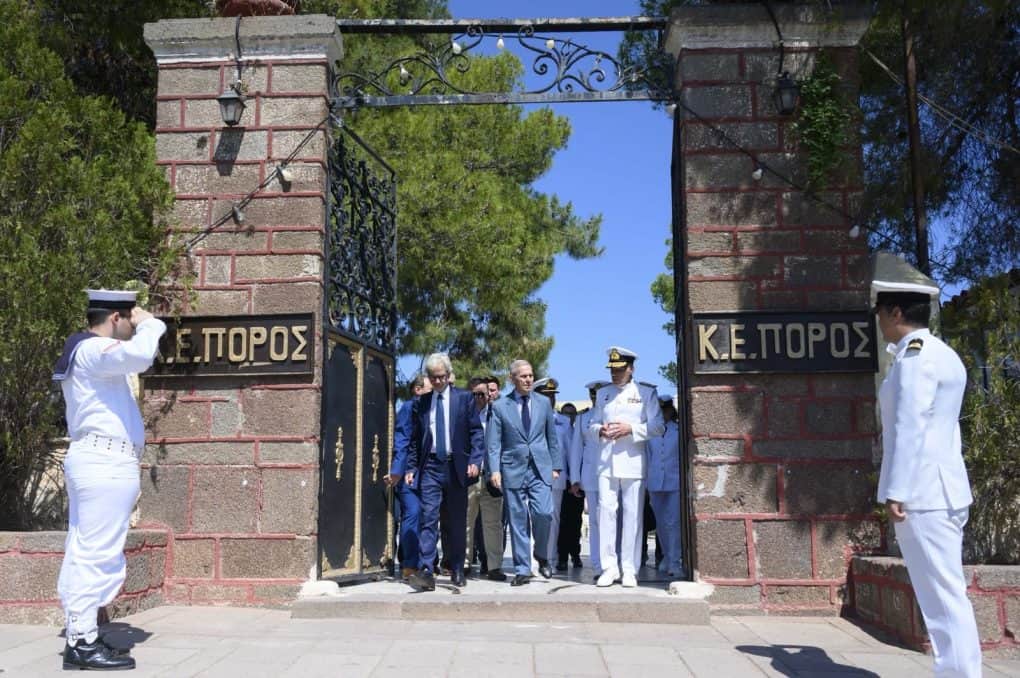 Τον υποδέχθηκαν εκεί, ο Διοικητής Ναυτικής Εκπαίδευσης (ΔΝΕ) Υποναύαρχος Σπυρίδων Τσιαφούτης ΠΝ και ο Διοικητής του Κ.Ε. «ΠΟΡΟΣ» Πλοίαρχος Παύλος Κούφαλης ΠΝ.