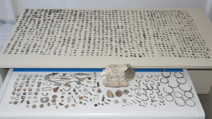 Μεταξύ άλλων βρέθηκαν και κατασχέθηκαν ένα απολίθωμα λειψάνου προβοσκιδωτού ζώου, εκτιμώμενης ηλικίας περίπου τριών εκατομμυρίων ετών, 1.096 αρχαία νομίσματα διαφόρων μεγεθών, 49 αρχαία κοσμήματα, 123 προσαρτήματα σκευών συμποσίου και ενδυμάτων ιστορικής και αρχαιολογικής αξίας κ.α.