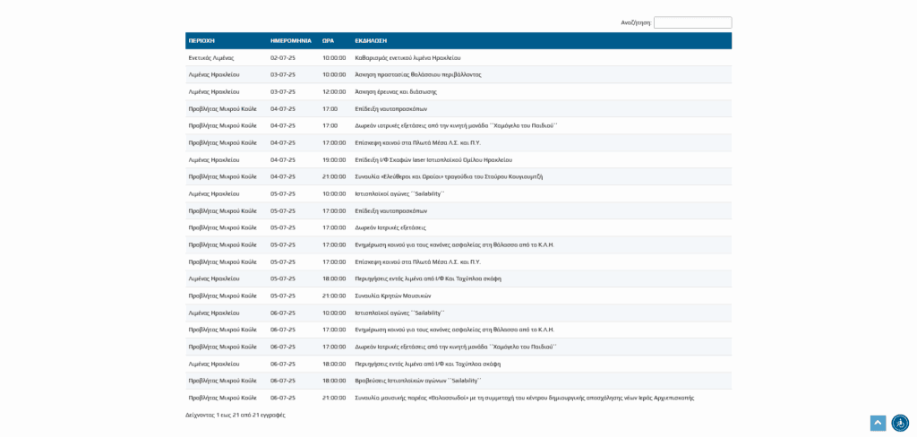 Οι πρώτες εκδηλώσεις ξεκίνησαν από Τρίτη 2 Ιουλίου, με περιβαλλοντικές δράσεις με τον καθαρισμό του Ενετικού Λιμένος Ηρακλείου, με ασκήσεις προστασίας θαλάσσιου περιβάλλοντος, με ασκήσεις έρευνας και διάσωσης, γεμίζοντας με ήχους και εικόνες το Λιμάνι του Ηρακλείου.
