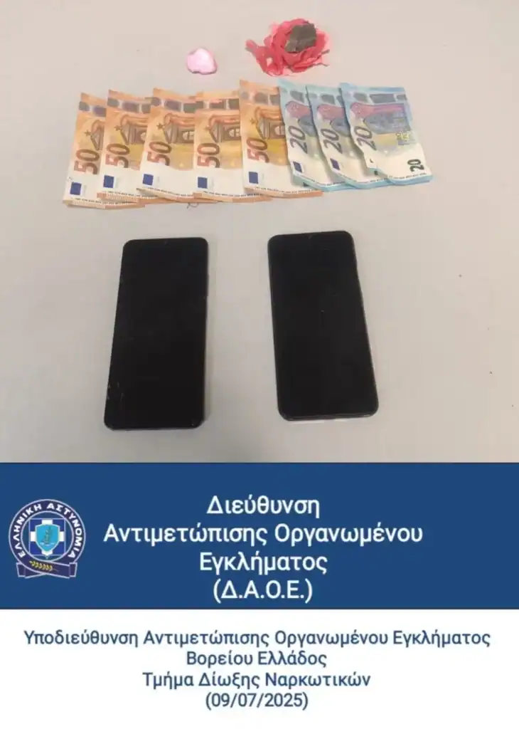 Από το Τμήμα Δίωξης Ναρκωτικών της Υποδιεύθυνσης Αντιμετώπισης Οργανωμένου Εγκλήματος Βορείου Ελλάδος συνελήφθη, πρωινές ώρες χθες Τετάρτη 9 Ιουλίου 2025, ημεδαπή για κατοχή και διακίνηση ναρκωτικών ουσιών στην ευρύτερη περιοχή της Θεσσαλονίκης.