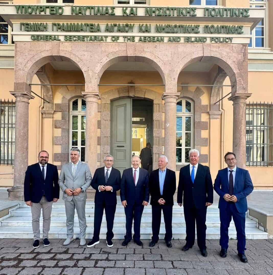 Ο Υφυπουργός Ναυτιλίας και Νησιωτικής Πολιτικής, Στέφανος Γκίκας, υποδέχθηκε χθες στην Γενική Γραμματεία Αιγαίου και Νησιωτικής Πολιτικής στην Μυτιλήνη, μαζί με τον Γενικό Γραμματέα Μανώλη Κουτουλάκη, τους τρεις Περιφερειάρχες των νησιωτικών περιοχών της χώρας, ήτοι: Βορείου Αιγαίου, Κωνσταντίνο Μουτζούρη, Νοτίου Αιγαίου, Γιώργο Χατζημάρκο και Ιονίων Νήσων, Γιάννη Τρεπεκλή, καθώς και τον Περιφερειάρχη Ανατολικής Μακεδονίας και Θράκης, Χριστόδουλο Τοψίδη.