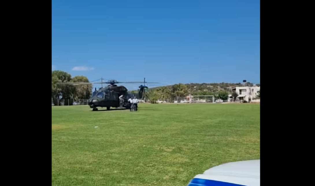 Ο κ. Δένδιας έφτασε με ελικόπτερο, το οποίο προσγειώθηκε στο γήπεδο ποδοσφαίρου του Καλού Χωριού, μόλις 10 χιλιόμετρα από την πόλη του Αγίου Νικολάου.