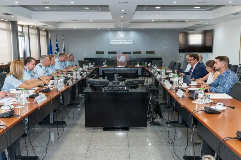 Η συνάντηση έλαβε χώρα στην αίθουσα «Π. Μπακογιάννης» του Υπουργείου Προστασίας του Πολίτη, στο πλαίσιο ενίσχυσης της αστυνομικής συνεργασίας της Χώρας μας με τον Οργανισμό της EUROPOL.