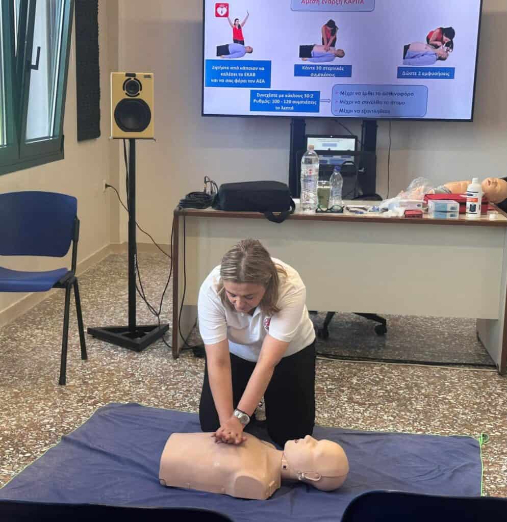 Συγκεκριμένα, την Τετάρτη (10/9), κατά τη διάρκεια προγραμματισμένης εκπαίδευσης του προσωπικού ξενοδοχείου στην Κέρκυρα από νοσηλευτικό προσωπικό του Ελληνικού Ερυθρού Σταυρού, σημειώθηκε σοβαρό περιστατικό ανακοπής καρδιάς σε γυναίκα που διέμενε στο ξενοδοχείο. Η Νοσηλεύτρια – Εκπαιδεύτρια του Περιφερειακού Τμήματος Ε.Ε.Σ. Ιωαννίνων, που βρισκόταν στον χώρο, έσπευσε άμεσα και ξεκίνησε καρδιοπνευμονική αναζωογόνηση (ΚΑΡΠΑ), εφαρμόζοντας παράλληλα τη χρήση απινιδωτή (AED). Ύστερα από τρεις κύκλους ΚΑΡΠΑ, η γυναίκα ανέκτησε τις αισθήσεις της, αποδεικνύοντας με τον πιο συγκλονιστικό τρόπο τη σημασία της γνώσης και της έγκαιρης παρέμβασης. Στη συνέχεια, το ΕΚΑΒ μετέφερε την ασθενή στο Γενικό Νοσοκομείο Κέρκυρας, όπου της παρασχέθηκε περαιτέρω φροντίδα.