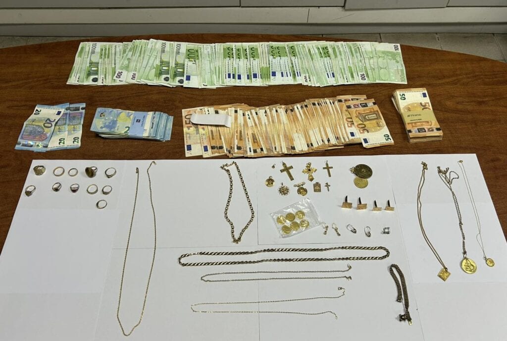 Κατόπιν συντονισμένης επιχείρησης που πραγματοποιήθηκε στις 22.09.2025 το απόγευμα από αστυνομικούς της Υποδιεύθυνσης Δίωξης και Εξιχνίασης Εγκλημάτων Ηρακλείου, εντοπίστηκε ο 54χρονος στο λιμάνι του Ηρακλείου και συνελήφθη. Στην κατοχή του βρέθηκαν και κατασχέθηκαν το χρηματικό ποσό των 34.610 ευρώ και χρυσαφικά αξίας 30.000 ευρώ και σε χώρο που χρησιμοποιούσε βρέθηκαν επιπλέον 4.000 ευρώ, τα οποία κατασχέθηκαν ως προερχόμενα από την παράνομη δραστηριότητα του.