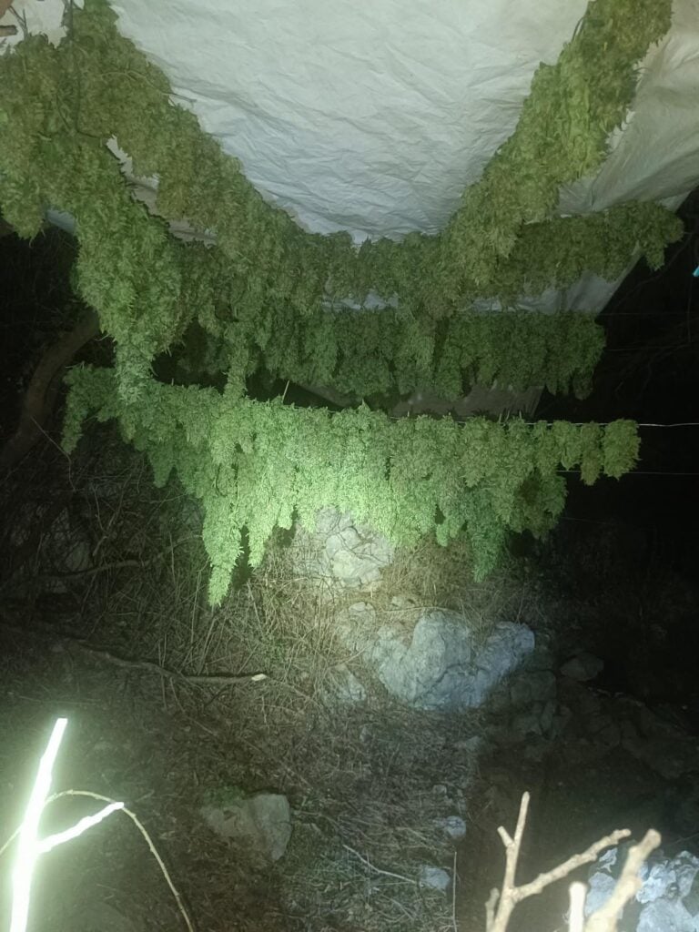 Κατά τη διάρκεια της επιχείρησης εντοπίστηκε ειδικά διαμορφωμένος χώρος, στον οποίο καλλιεργούνταν επιμελώς δενδρύλλια κάνναβης και κατελήφθη 57χρονος κατά το χρόνο που προέβαινε σε καλλιεργητικές εργασίες και συνελήφθη.