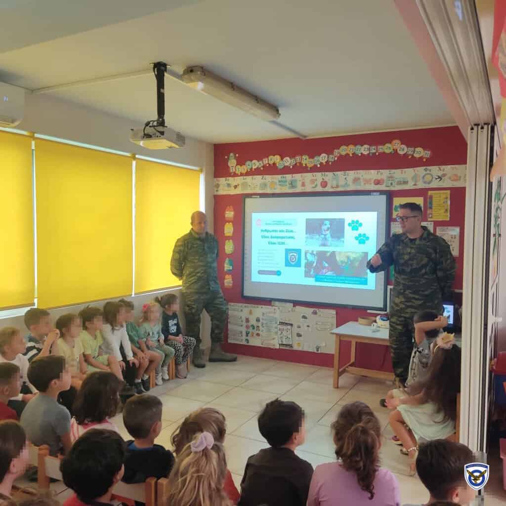 Την Πέμπτη 2 Οκτωβρίου 2025, η Διεπιστημονική Ομάδα Παρέμβασης με τη Βοήθεια Σκύλου «Μελάμπους» της Διεύθυνσης Υγειονομικού του Γενικού Επιτελείου Αεροπορίας (ΓΕΑ/ΔΥΓ), στο πλαίσιο της Παγκόσμιας Ημέρας των Ζώων η οποία τιμάται στις 4 Οκτωβρίου, πραγματοποίησε στο 3ο Νηπιαγωγείο Πόρτο Ράφτη, εκπαιδευτική δραστηριότητα, με σκοπό την ευαισθητοποίηση των μαθητών απέναντι στα ζώα.