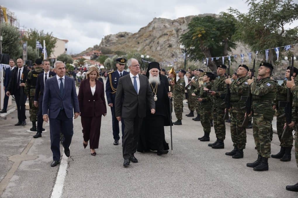 Ο κ. Δαβάκης, παρακολούθησε τη Δοξολογία στον Μητροπολιτικό Ιερό Ναό Αγίας Τριάδας Μύρινας, στην οποία χοροστάτησε ο Σεβασμιώτατος Μητροπολίτης Λήμνου και Αγίου Ευστρατίου κ.κ. Ιερόθεος. Στη συνέχεια μετέβη στο Ηρώο, όπου πραγματοποιήθηκε επιμνημόσυνη δέηση και κατάθεση στεφάνων. Ακολούθως, παρακολούθησε τη στρατιωτική και μαθητική παρέλαση.