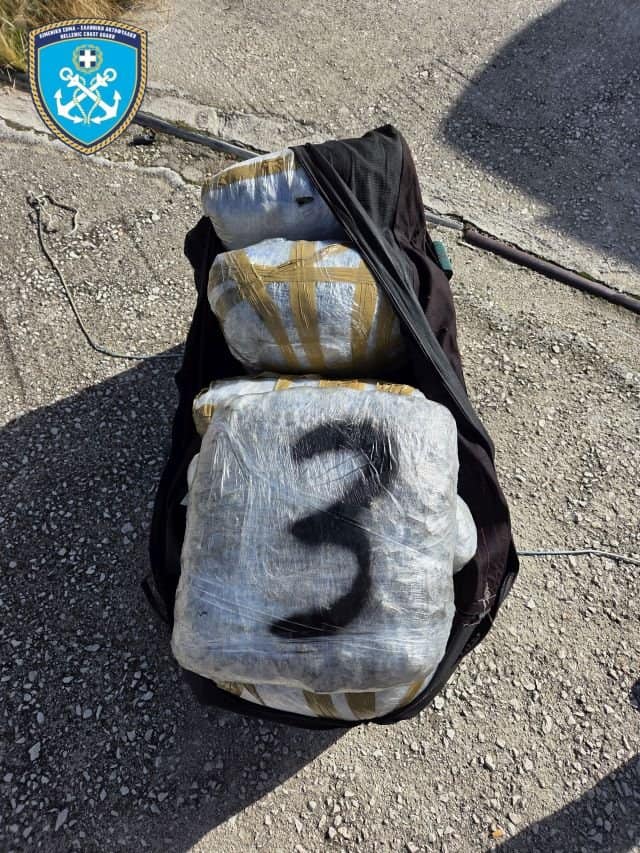 Κατά τη διάρκεια των ερευνών, τις πρωινές ώρες την 24-10-2025, με τη συνδρομή ιδιώτη δύτη, ανασύρθηκαν από το εσωτερικό του ανωτέρω σκάφους πέντε αυτοσχέδιες πλαστικές συσκευασίες που περιείχαν ποσότητα ναρκωτικής ουσίας, πιθανόν ακατέργαστης κάνναβης, συνολικού μικτού βάρους 79,75 κιλών. Σε συνέχεια των ερευνών, την 25-10-2025, στη θαλάσσια περιοχή “ΒΟΝΤΑ” Σαγιάδας εντοπίστηκε επιπλέον σάκος, ο οποίος αποτελούσε μέρος του συνολικού φορτίου και περιείχε έξι νάιλον συσκευασίες με ακατέργαστη κάνναβη, συνολικού μικτού βάρους 56,13 κιλών. Η συνολική ποσότητα ακατέργαστης κάνναβης που εντοπίστηκε και κατασχέθηκε ανήλθε στα 135,88 κιλά.