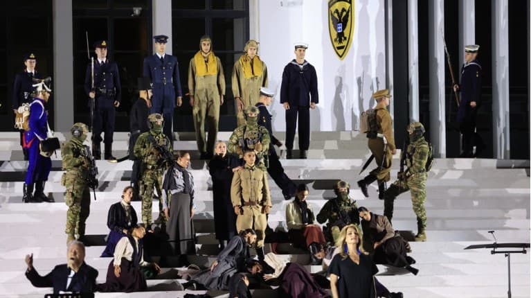 Το θεατρικό δρώμενο, που “έντυσαν” με τη συγκινητική τους αφήγηση η Άντζελα Γκερέκου και ο Άκης Σακελλαρίου, πλαισιώθηκε από τις ερμηνείες του Άγγελου Παπαδημητρίου και του Μανώλη Μητσιά, δημιουργώντας μια καλλιτεχνική στιγμή εθνικής υπερηφάνειας και τιμής.
