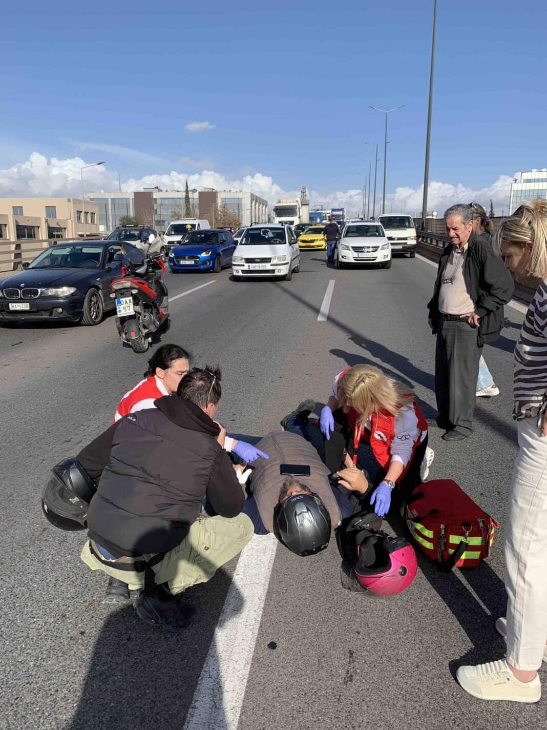 Την Τετάρτη (26/11), νωρίς το μεσημέρι, κλιμάκιο νοσηλευτικού προσωπικού του Ελληνικού Ερυθρού Σταυρού, το οποίο επέστρεφε με υπηρεσιακό όχημα από αιμοδοσία του Ε.Ε.Σ., παρενέβη άμεσα σε τροχαίο ατύχημα με τραυματισμό οδηγού μηχανής, στη Λεωφόρο Κηφισού.
